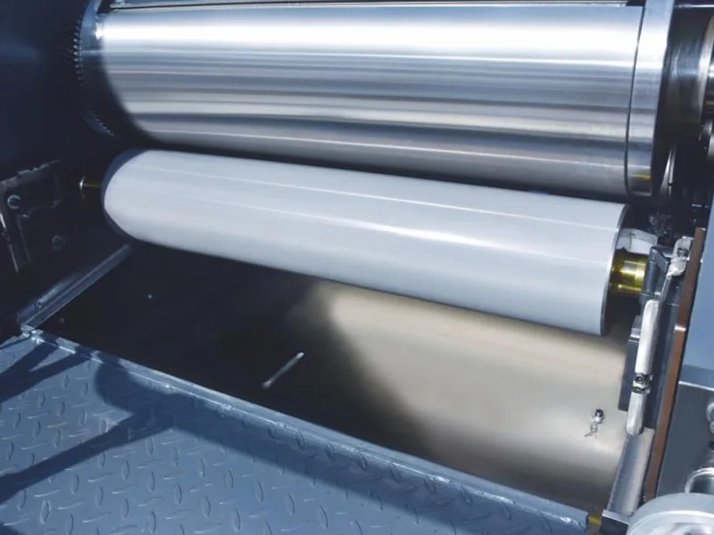 6. Rullo pressore di grande diametro, bilanciato dinamicamente per un rivestimento uniforme dell'olio.